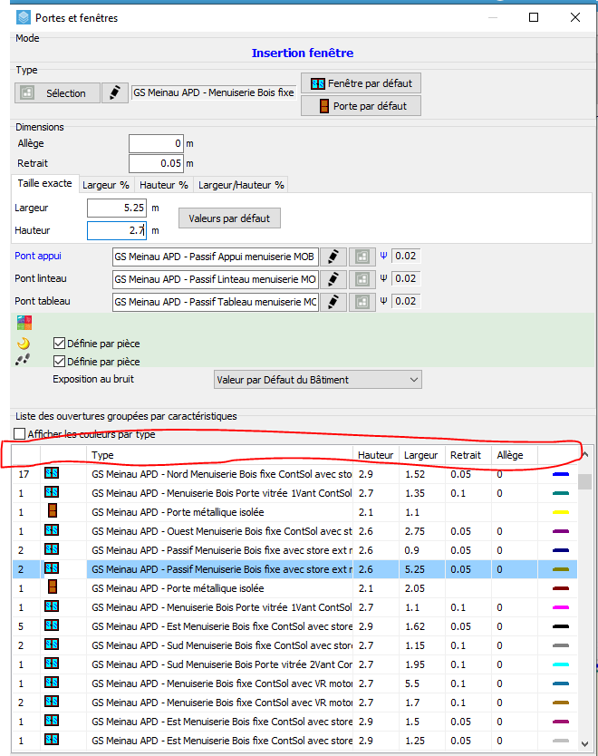 Oui le tableau de données existe mais ne permet pas par exemple de récupérer les caractéristiques d'une menuiseries pour après l'implanter sur plan.
