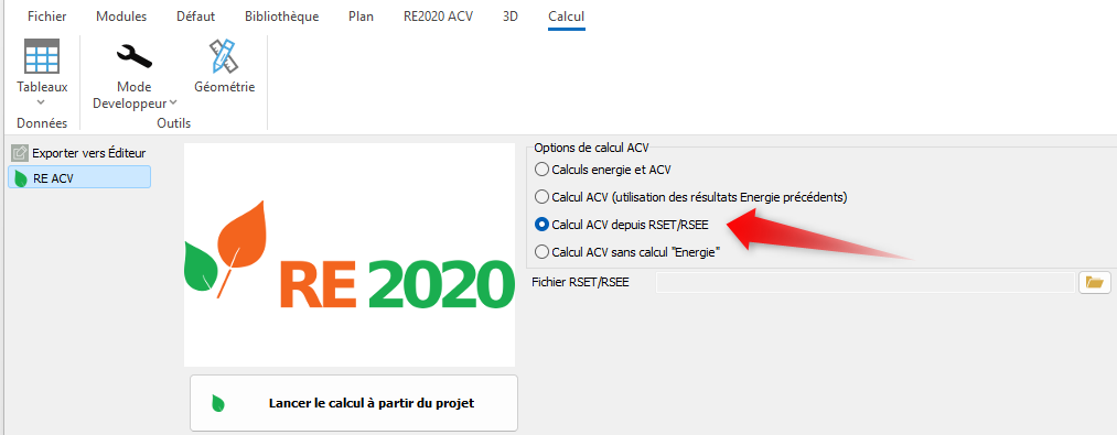 Oui, il est possible de faire un calcul ACV sur la base du RSET/RSEE du calcul énergies :